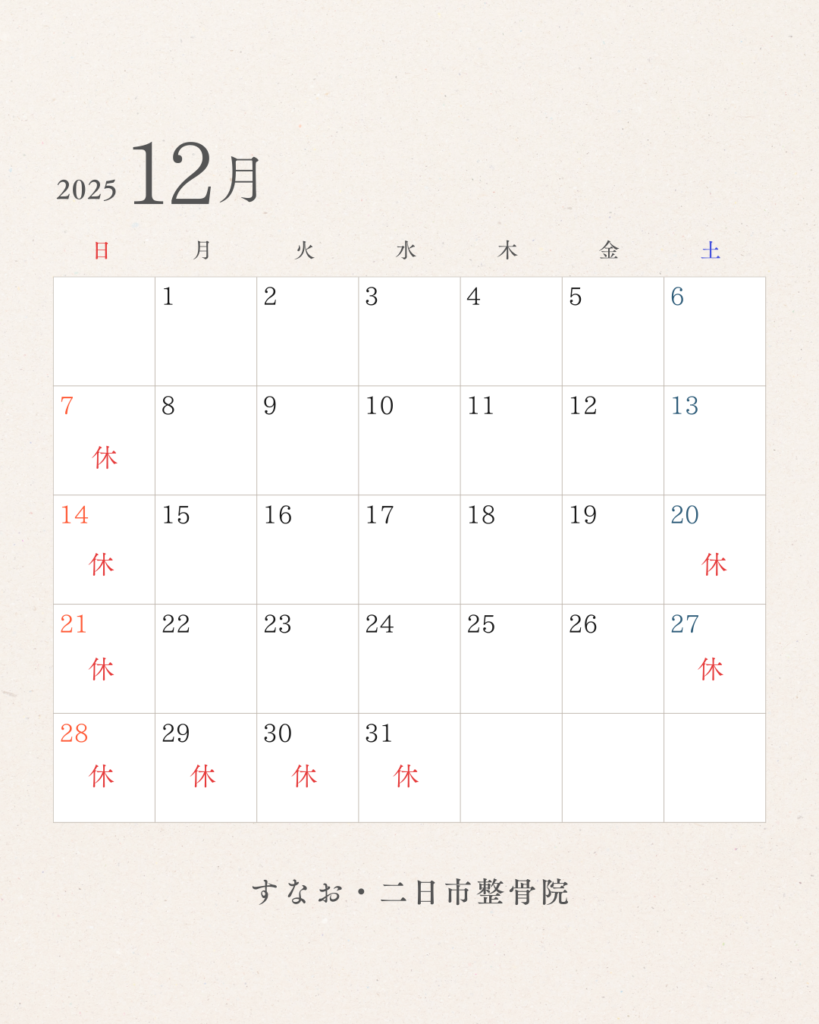 いつも「すなお・二日市整骨院」をご利用いただき、誠にありがとうございます。